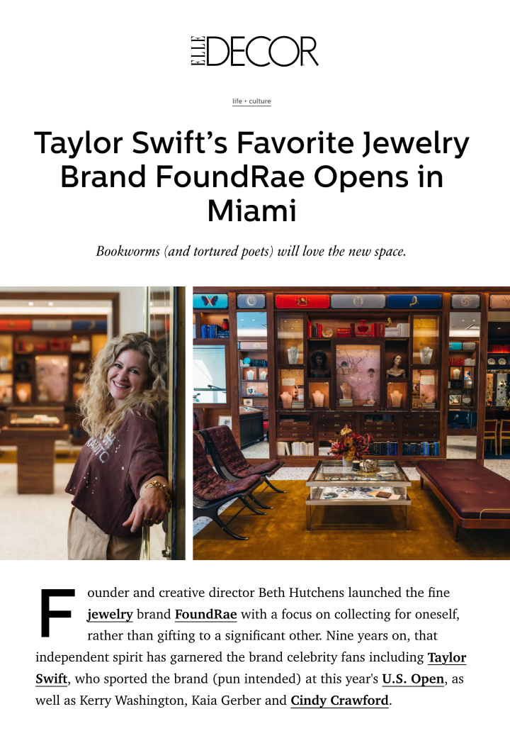 Back to all articles Taylor Swift’s Favorite Jewelry Brand FoundRae Opens in Miami April 30, 2025 View Online Article Here