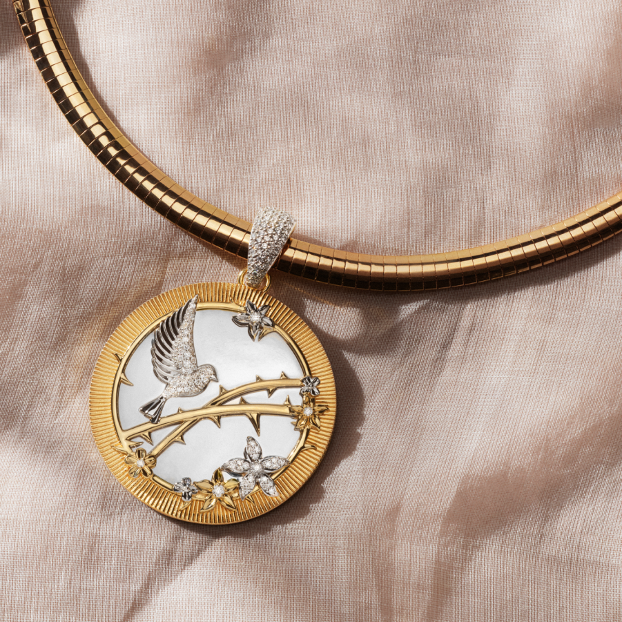 Our Annex Links let you add a pendant or medallion to any necklace. Available in yellow, white, and rose gold and smooth and pavé diamond styles, these oval-shaped links were made for instant flexibility. Use the hinge closure to slide on a medallion or pendant and easily clip this link onto any necklace.
