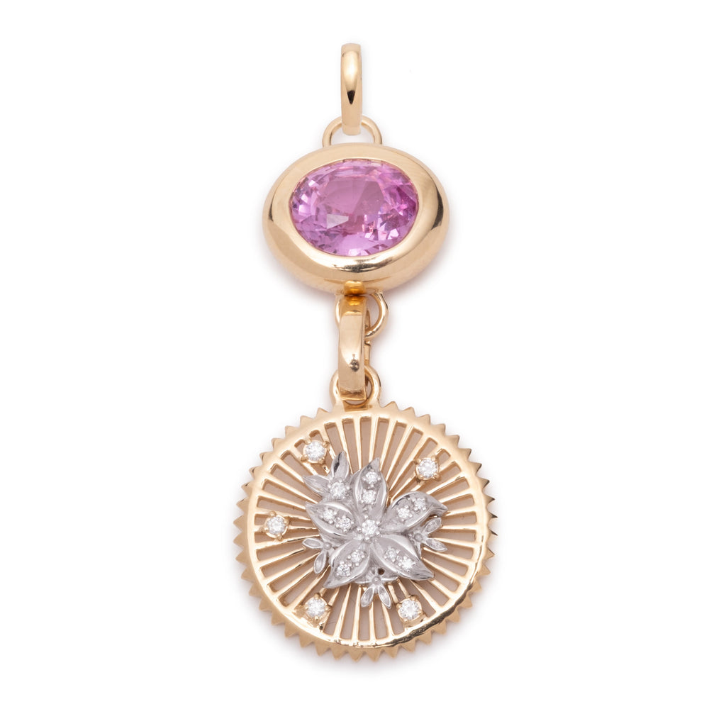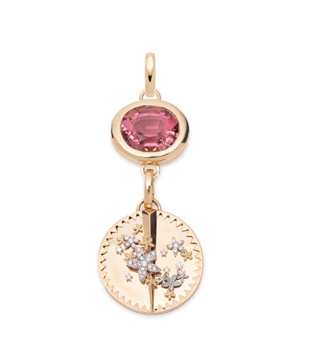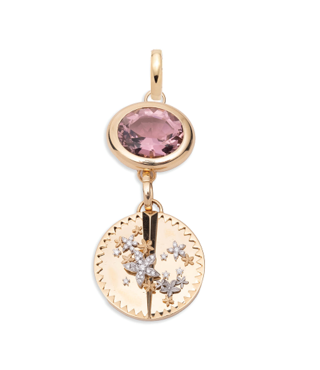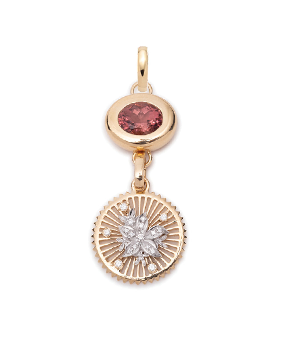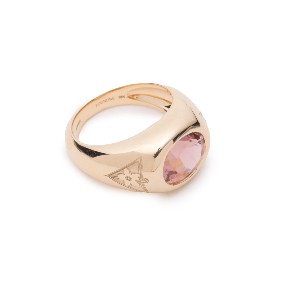 For our V MMXXV (May 2025) Collector’s Series, our gemstone treasure hunt began with the blossoms of Resilience: a palette of breathtaking pinks. We scoured through pink tourmalines, bi-color tourmalines, rhodolite garnets, pink sapphires, morganites, and a range of rosy spinels in the many shades of a blossom, looking to find the essence of its resilience in vivid color: lush, wild, abundant, defiant. Each stone has been uniquely set in one of two designs—a Cache Link Pendant or a Bombé Ring with a symbol of the Resilience, a blossom paired with a thorn, etched on the gold framing.