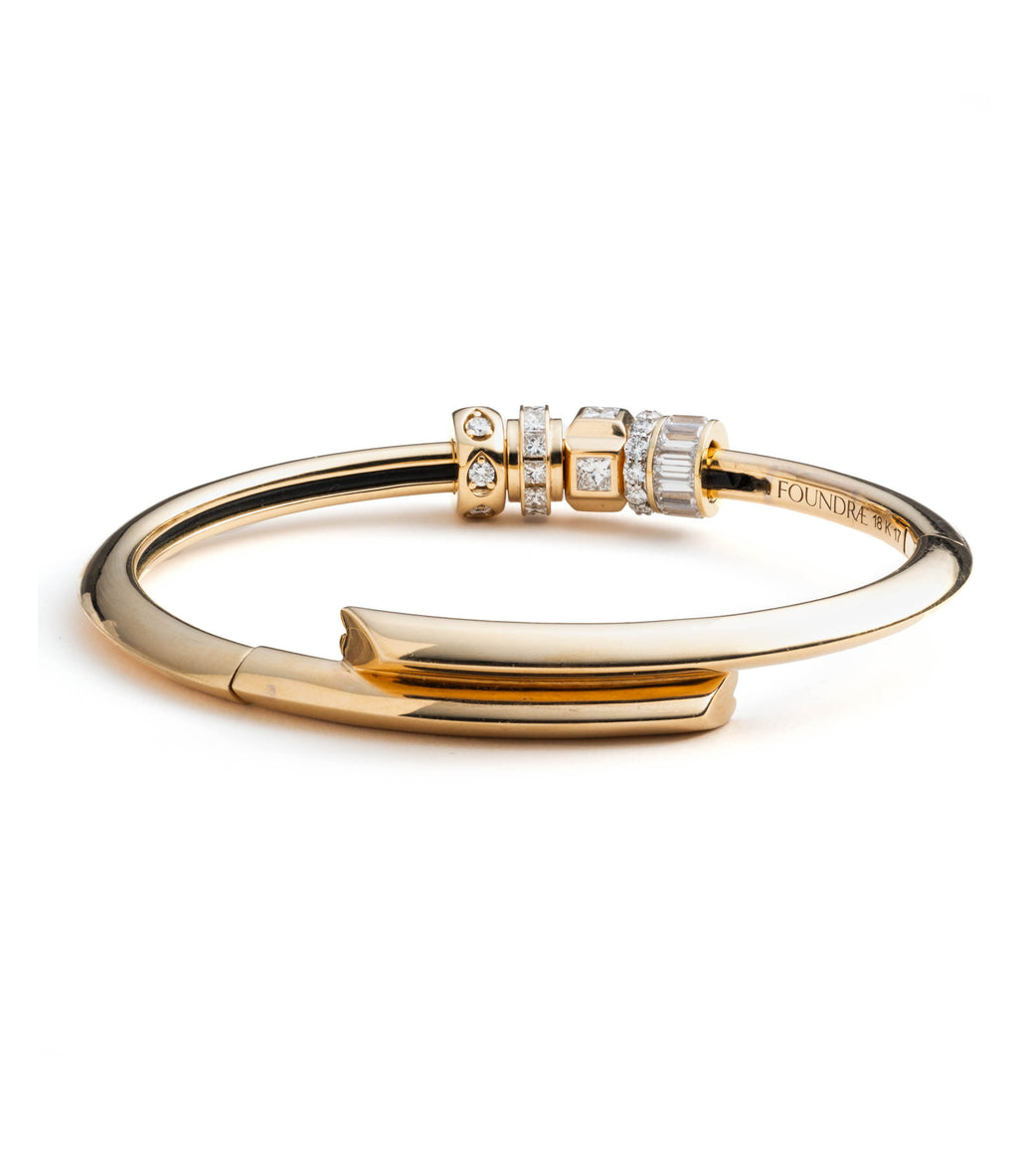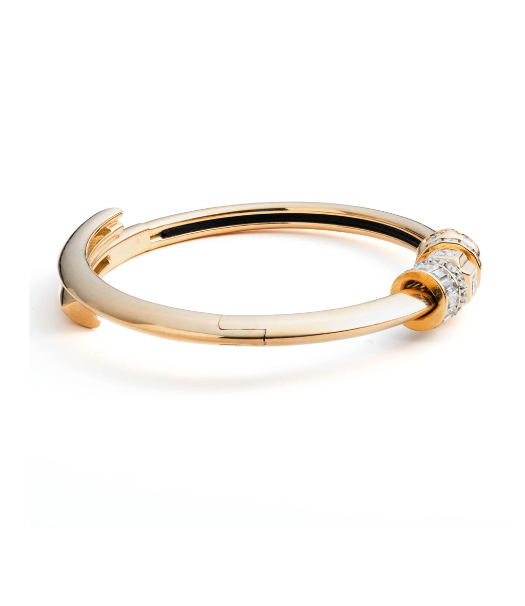 Diamond Heart Beat Strong Heart Bangle Story in Yellow Gold
