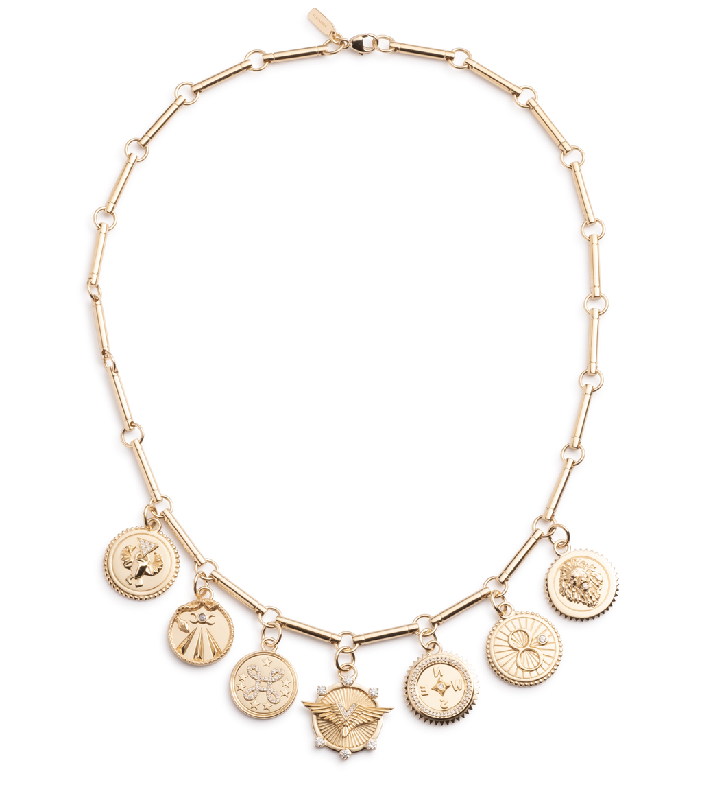 Crafted in 18k Yellow Gold, This Element Chain Choker necklace symbolizes 7 of our 10 Tenets: Protection, Wholeness, True Love, Passion, Internal Compass, Karma, and Strength... a tool for self-discovery and self-expression.