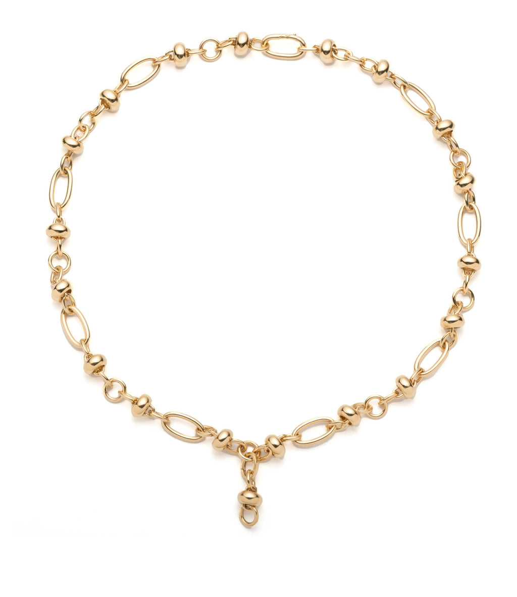 Crafted in 18k Yellow Gold, our Orbit Extension Chain has free-floating beads that spin as though in orbit on alternating round and oval links. This wonderfully versatile chain can be worn on its own, or paired with medallions or pendants. For extra styling options, attach your chosen medallion(s) or pendant(s) to the removable annex link extension, and they will hang 1 inch below the necklace.