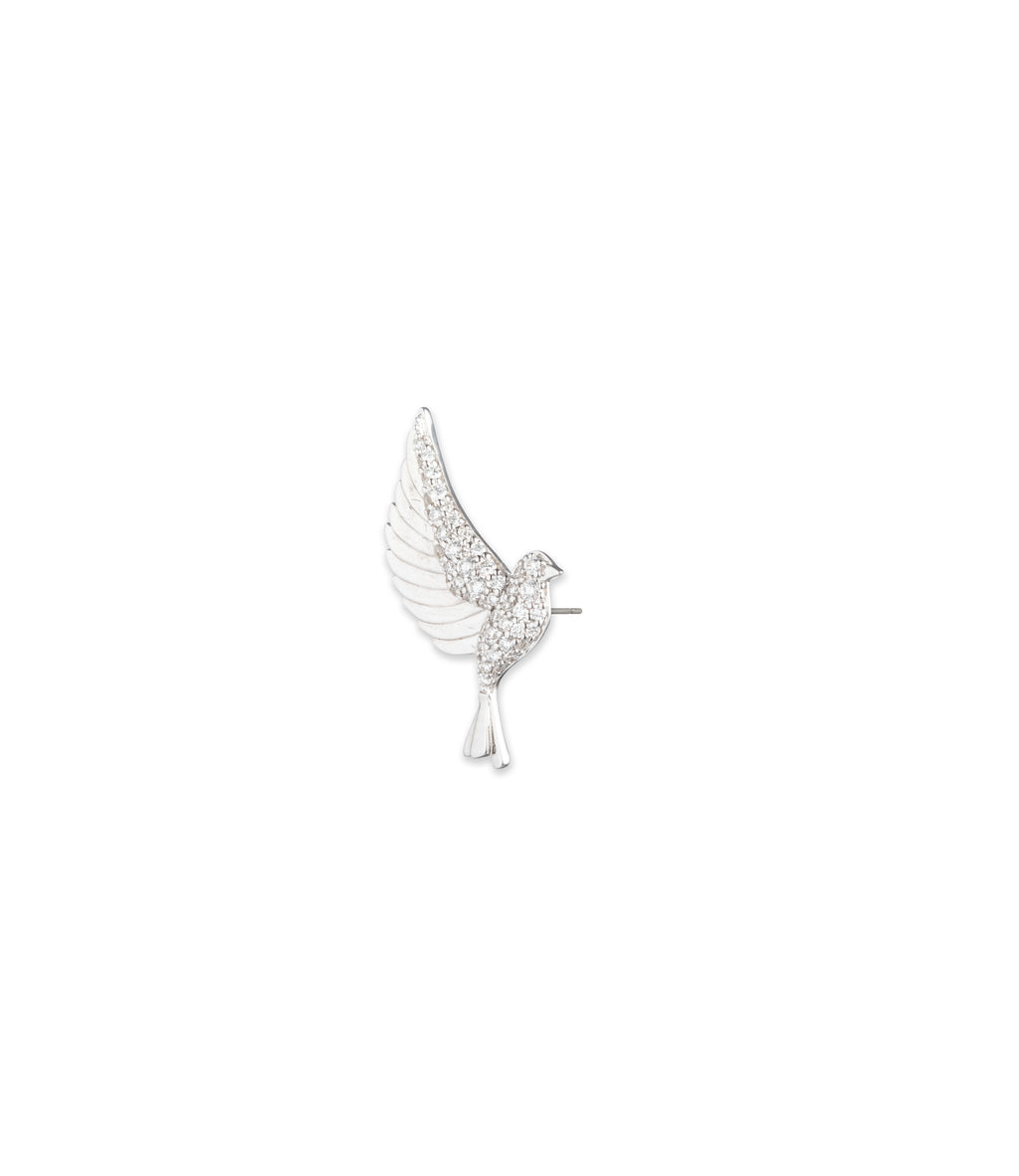 Crafted in 18k White Gold with Diamonds, our Sparrow Medium Ear Stud is part of our Resilience tenet. We chose the sparrow as a pictorial representation of its homophone spero, which means "I hope" in both Latin and Italian. The Latin phrase dum spiro, spero translates to "as long as I breathe, I hope"—a reminder in times of adversity that the sparrow will sing again.