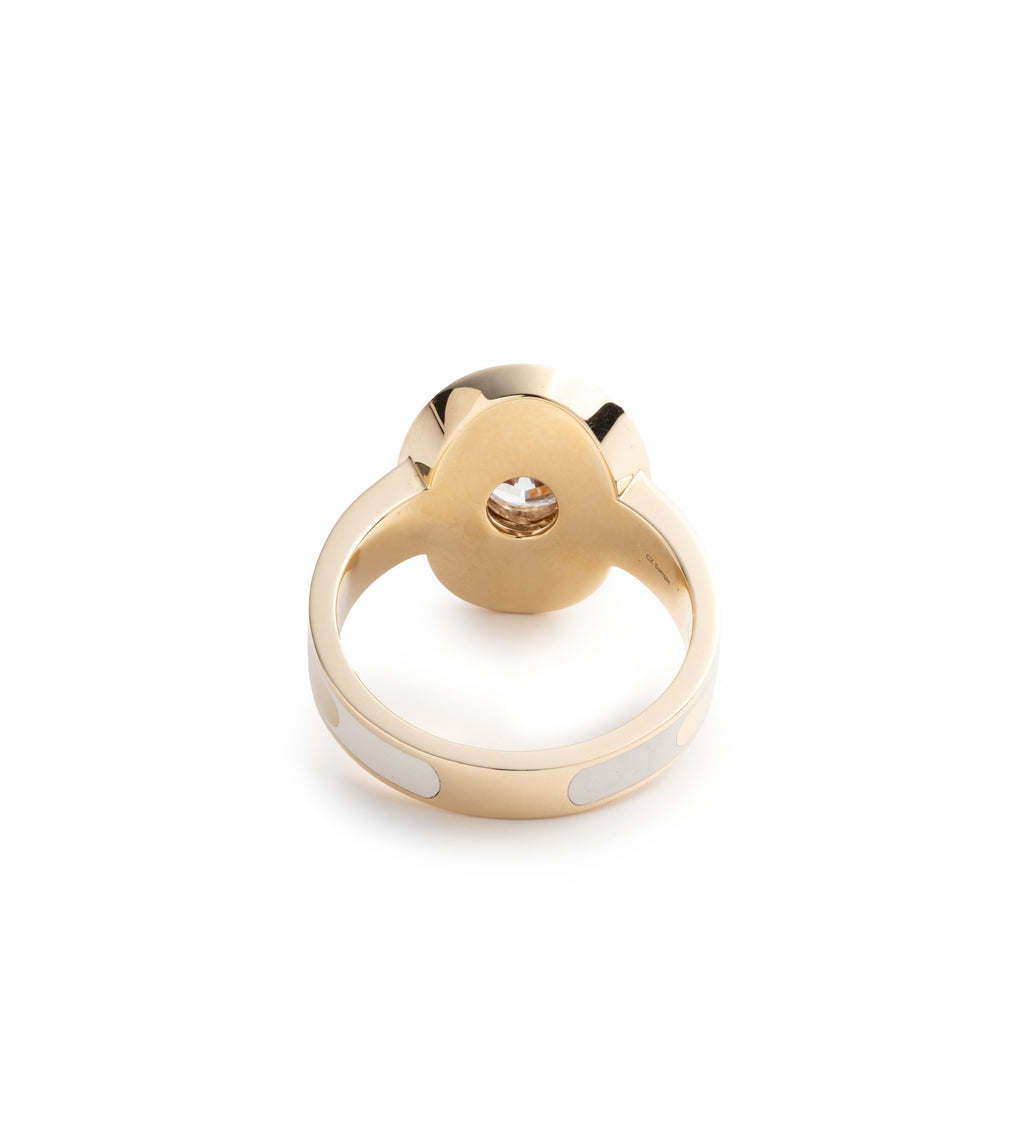 True Love Cigar Band in Yellow Gold and Cream Ceramic with Oval Diamond